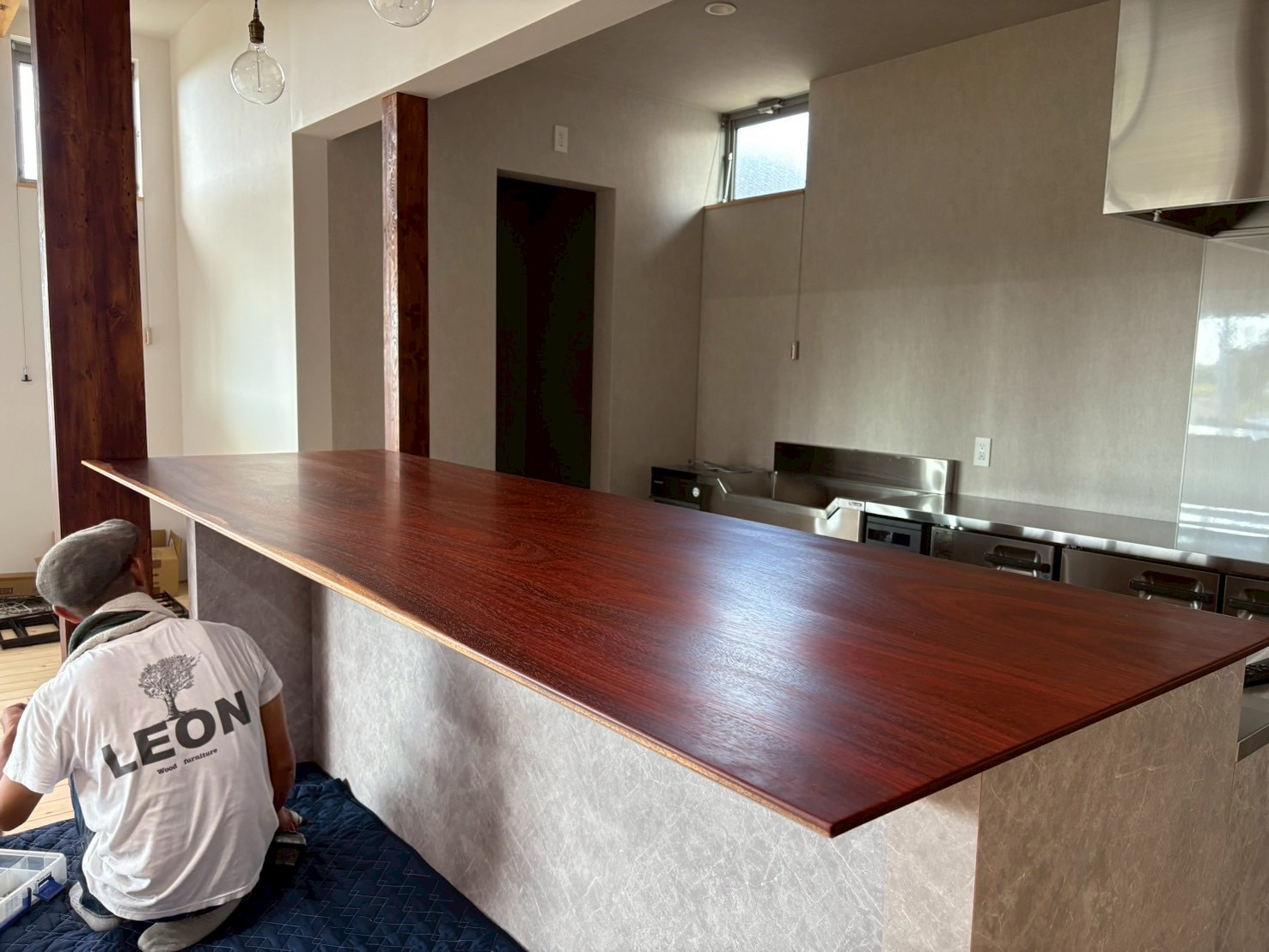 ほんと真っ赤っか。これは一切着色していない木材本来の天然色です。